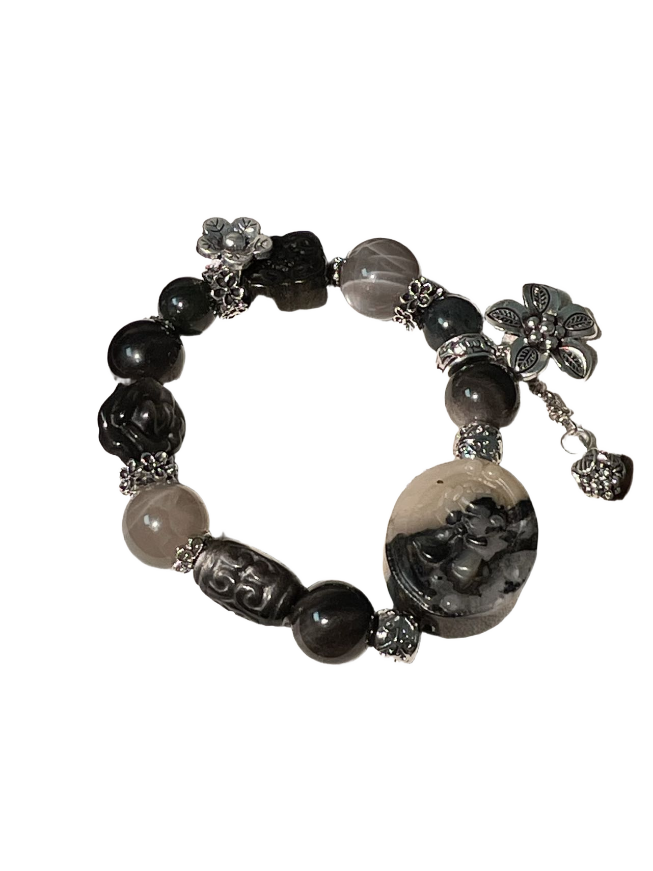 The red beads have a warm tone, while the black beads have a cold frosty texture
