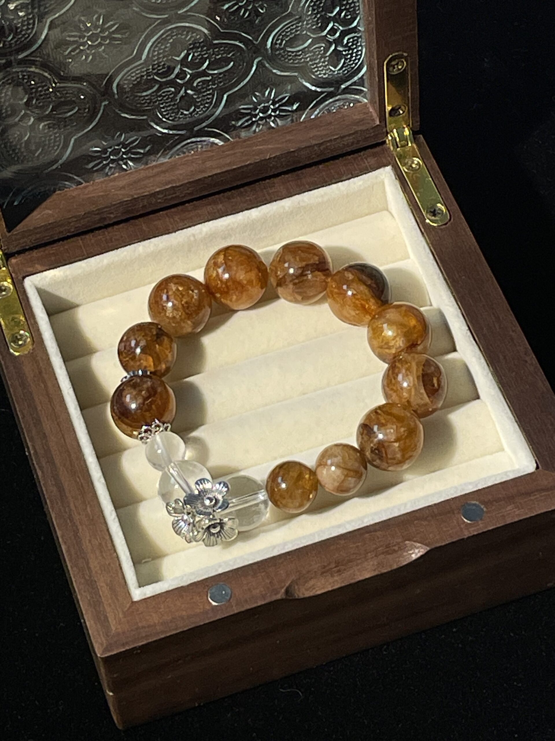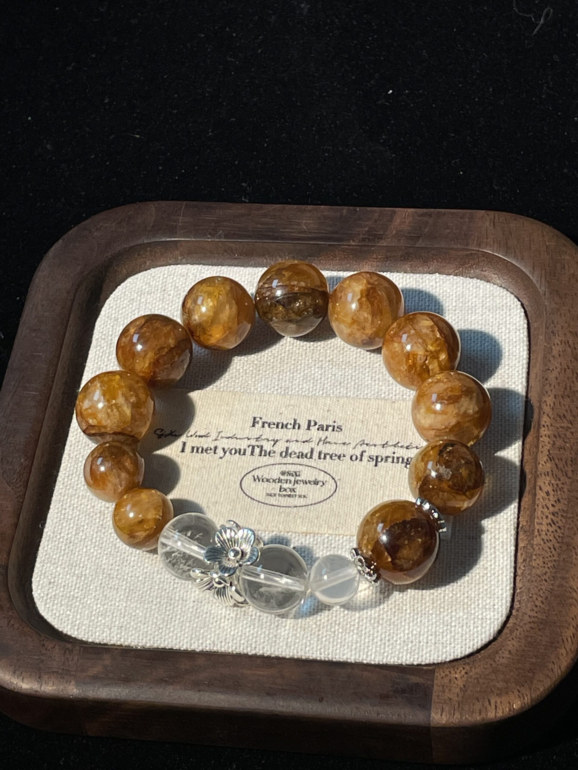 The luster of the brown beads is like the golden brown flowing light, and the crystal is like the fluorescent light hidden within, exuding a sense of magnificence